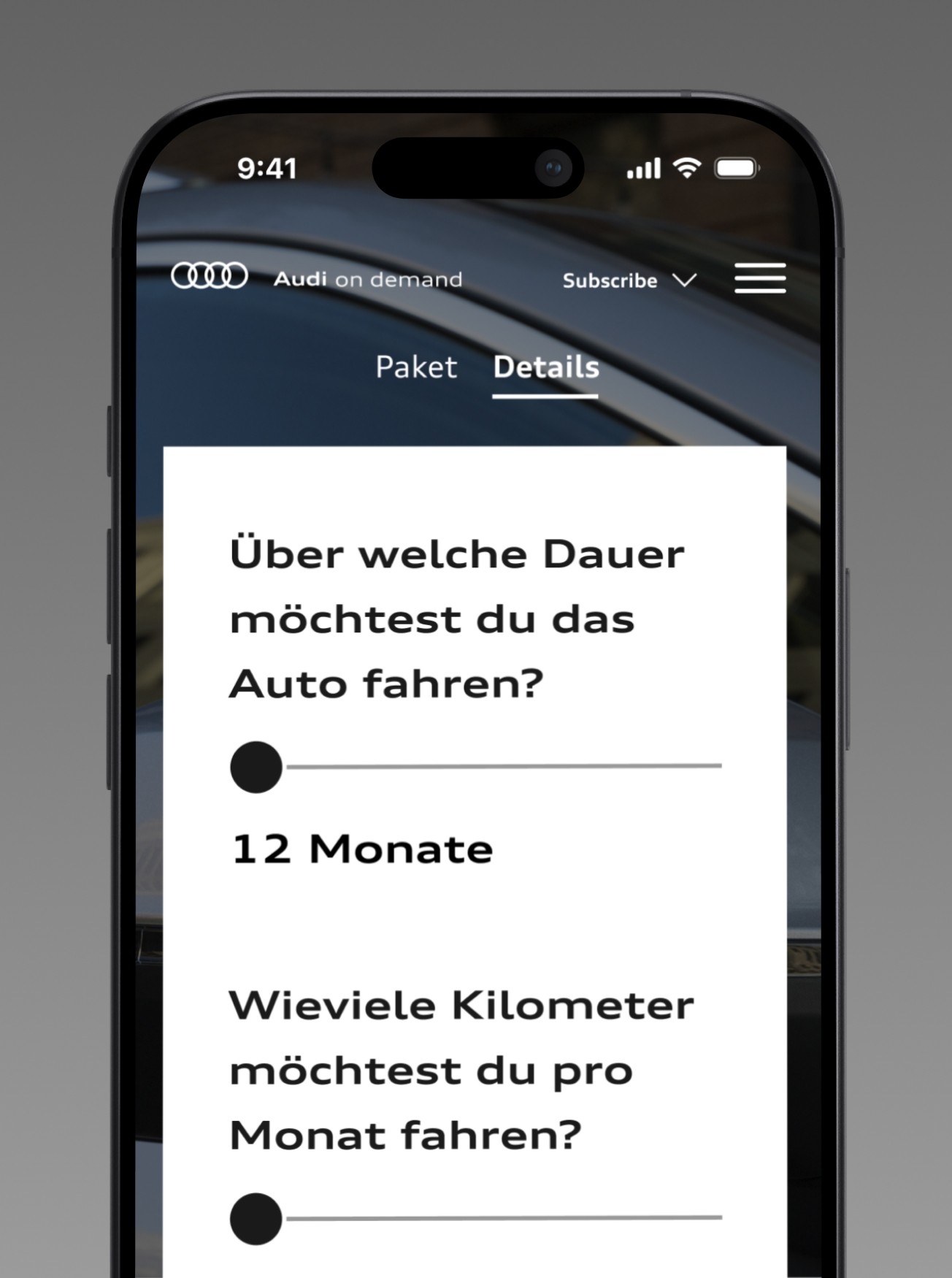 We didn't start from scratch, but specifically analyzed and adapted insights and user needs from the existing Audi Rent division. However, since a subscription replaces classic vehicle ownership, the strategic priority was on transparency and control. The digital process had to safely guide the user and give them the feeling that signing a high-priced contract online is just as secure and binding as at the local dealership.