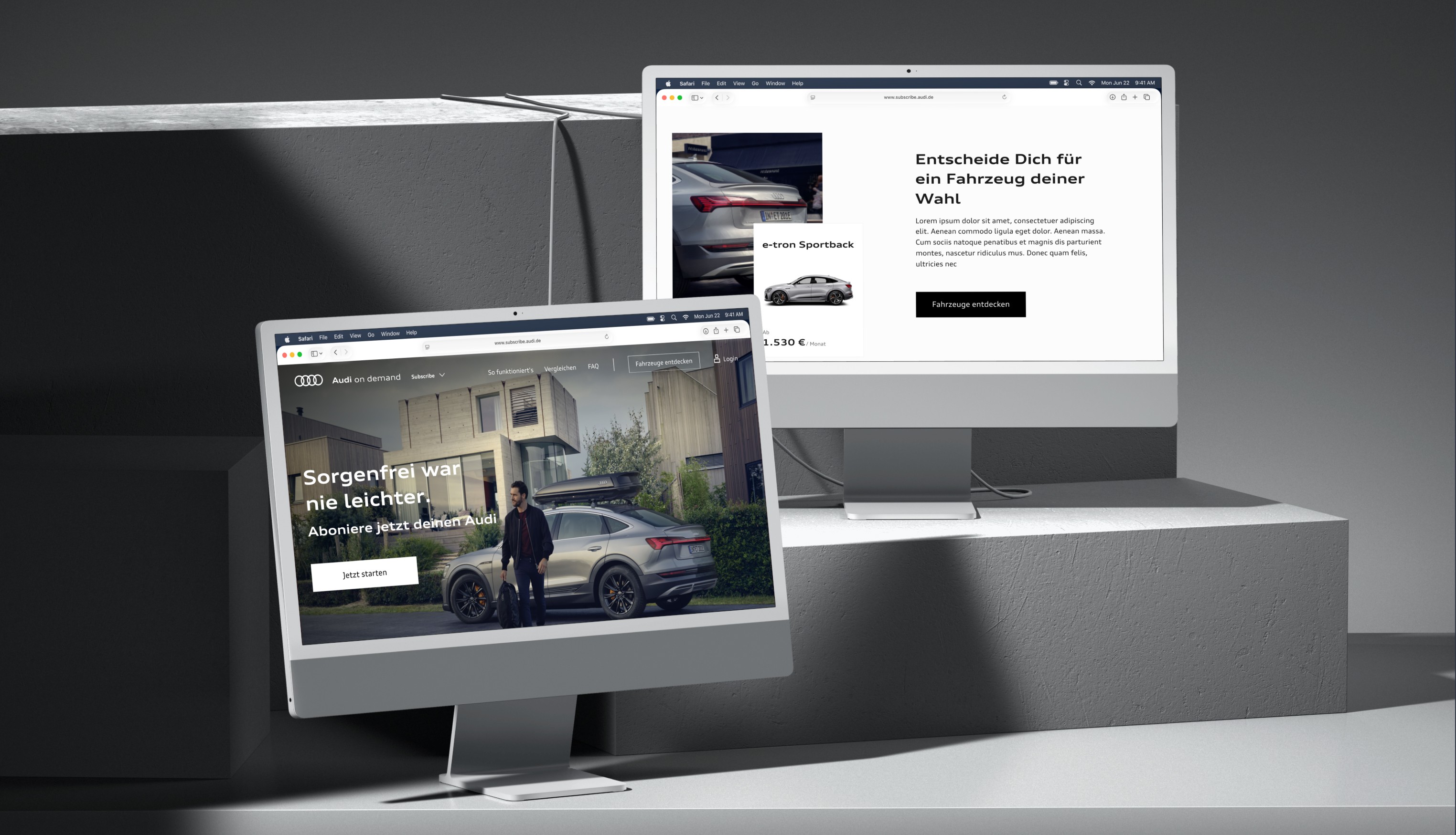 Classic vehicle ownership is losing relevance – especially among target groups switching to electromobility and seeking flexible mobility solutions. For Audi Business Innovation, we strategically expanded the existing Rent product and realized the entry into the subscription market (car-as-a-service). As Experience Designer, my task was to develop an end-to-end journey that unites two worlds: A digital frontend that builds maximum trust, and a complex backend that transforms existing dealer and corporate processes into a completely new sales model.
