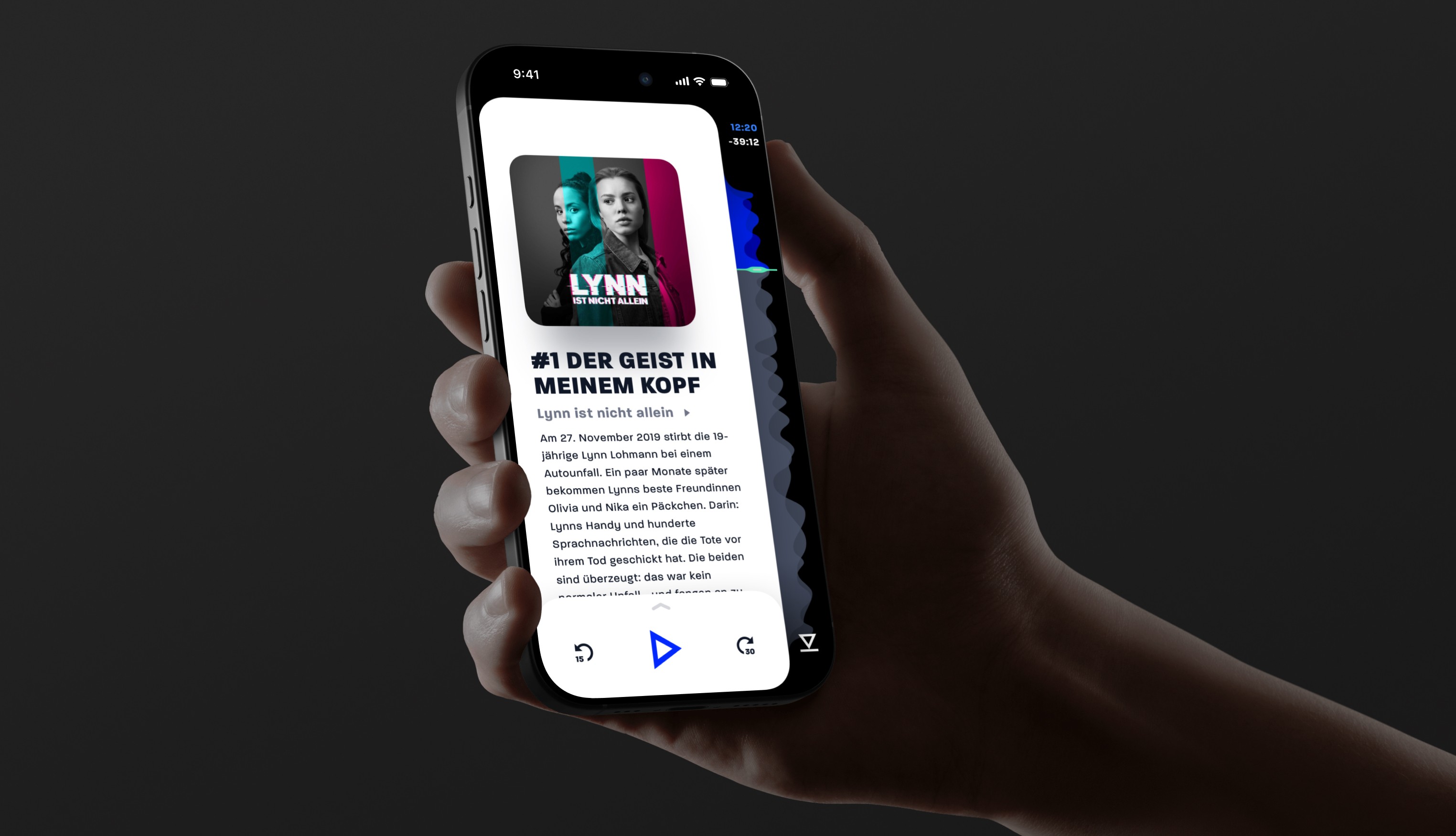 Thanks to this unique content focus, we were also able to break new ground in UX/UI design. Instead of applying learned, standardized podcast patterns, we created an experience that visually puts the content center stage. Each format received individual cover artwork, its own typography, and tailored copy text.