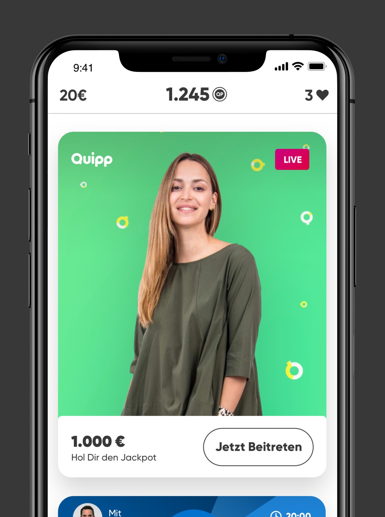 A live quiz show every evening at exactly 7 PM, playing for real money. In its mechanics, Quipp sounded like classic television, but it was the anchor for an extremely successful digital product. The strategic task was to translate the unbeatable characteristics of a linear live event – the simultaneity and the suspense – into an entertaining, digital app experience. Thousands of users played 10 questions in real-time every day, without hurdles or detours, to share the jackpot.